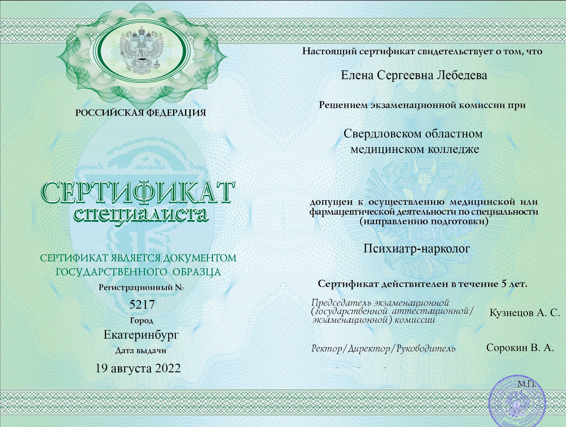 Елена Сергеевна Лебедева врач нарколог клиники доктора Стукаловой в Урае